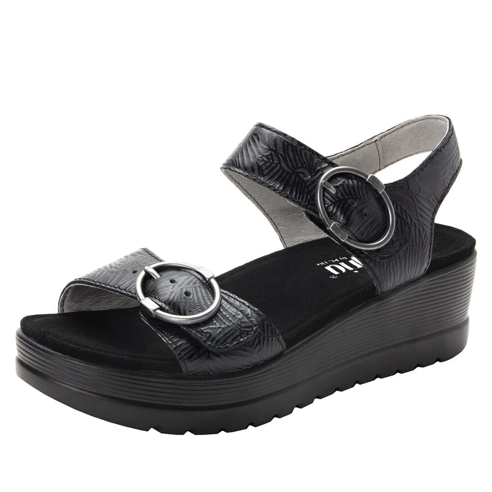 - MOR-520 Alegria Women’s Morgyn Flatform Wedge Sandals – Black