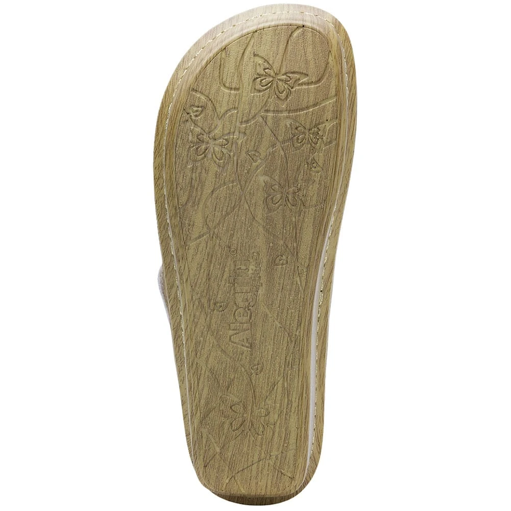 Just to hang out in these VAN-261 Alegria Women’s Vanessa Thong Sandals pop of subtle color to your evening wardrobe with the sand, fawn and ivory accents across the leather upper of this thong.